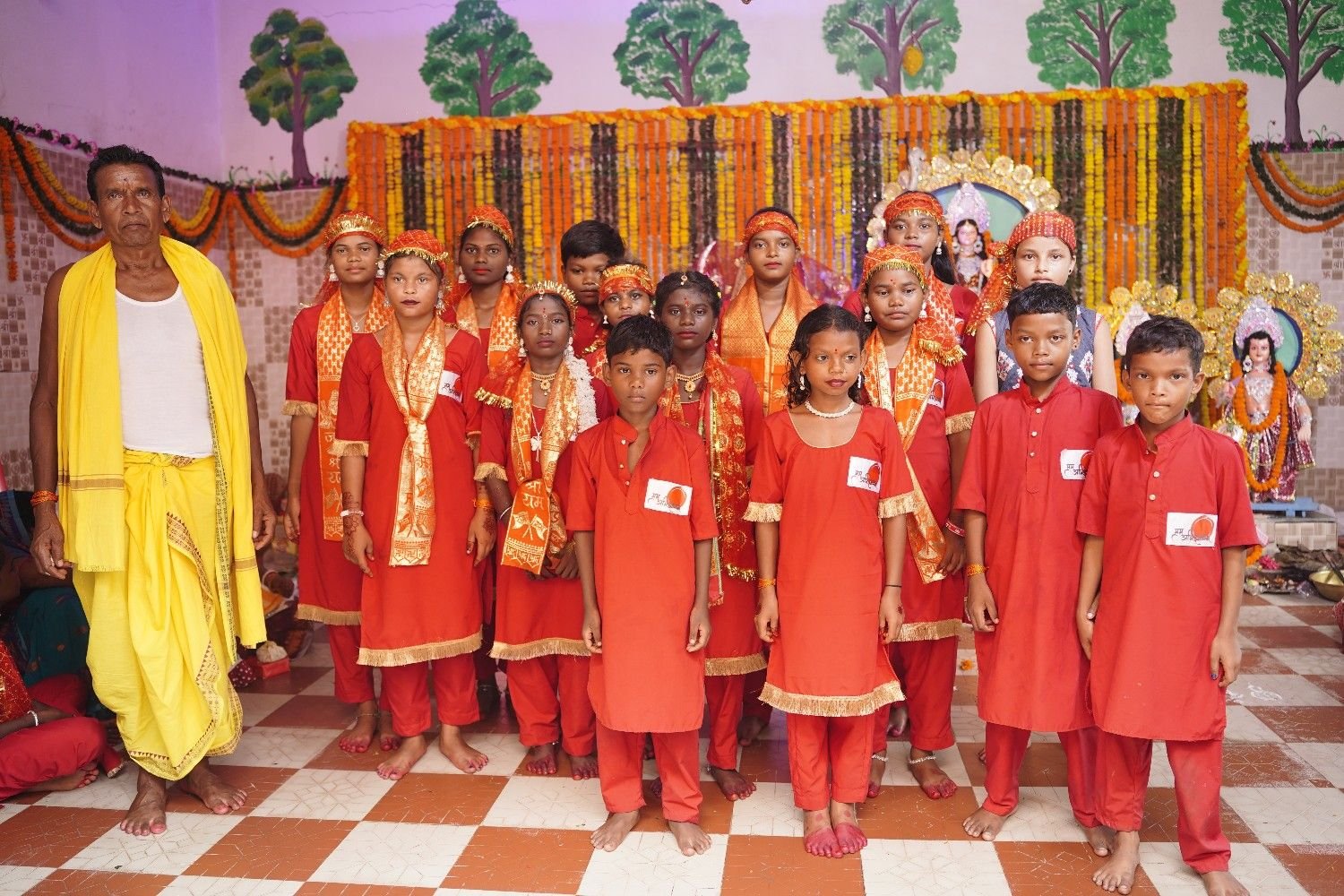 Our pictures capture the essence of this auspicious occasion. We see a gathering of young girls, adorned in bright red, radiating innocence and grace as they participate in the rituals. These ‘little goddesses’ are the focal point, honored and celebrated, embodying the strength and purity of Devi. Alongside them, elders and community members from Vanvasi Kalyan Kendra at Shri Shri Shiv-Shakti Panchmukhi Hanuman Mandir in Kultond, Patamda, Jharkhand, offer their blessings, symbolizing a community’s commitment to nurturing its future.